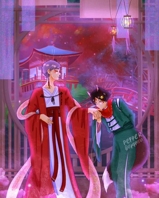 I present to you my piece for @mamonsinon for the Valentine’s day @sunaosaexchange ! I tried including most of your preferred AUs, like supernatural AU and soulmates AU, I hope you like it! 😊