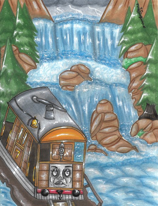 Toby has NOT had the best luck with rivers I will tell you that. #ttte #thomasthetankengine #traditionalart