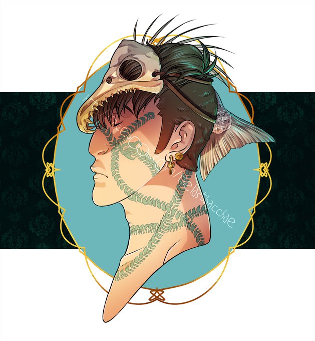#digitalart #salmon #tribal #skull #characterdesign #originalcharacter #illustration #bacchae