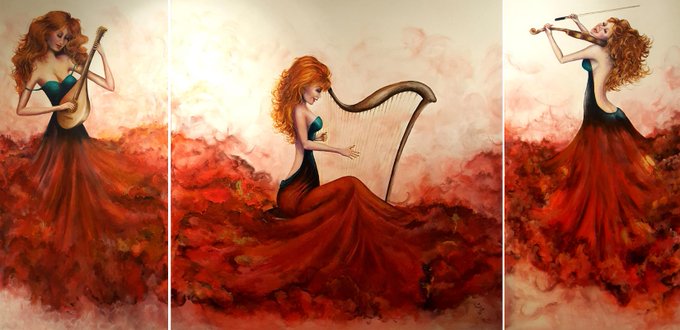 My own representation of the Greek Fates, goddesses who determined the thread of our loves. Acrylic on box canvas. 2m x 1m