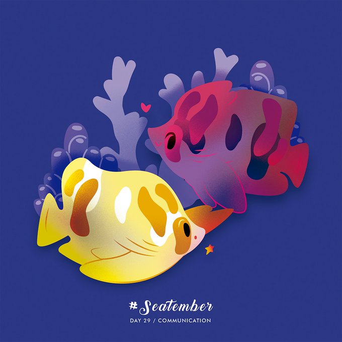 @evybenita Day 29 of #seatember themed by @evybenita. Communication. Many coral reef fish possess ultraviolet colour patterns as a protection for predators that can't seem them. Select species of reef fish may therefore serve as a 'private communication channel'. #illustration #cute