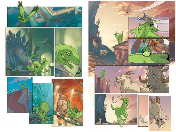 Did you know that Gar almost made it into #TeenTitansYearOne ? Each issue was to end with two pages of BB looking for the TT, always getting to each story location too late! They never made the cut but artist @karlkerschl shared these lost pages! #teentitans #beastboy 🐰🐠🦕🐙🦉-