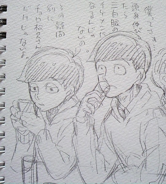 派生松はほぼほぼ知らないので見たい欲と最近おえかき楽しいので。どれ系の絵柄が好きかとか、あれば教えてもらえるとひたすら嬉しいです。大体こんな感じでしょうか…?