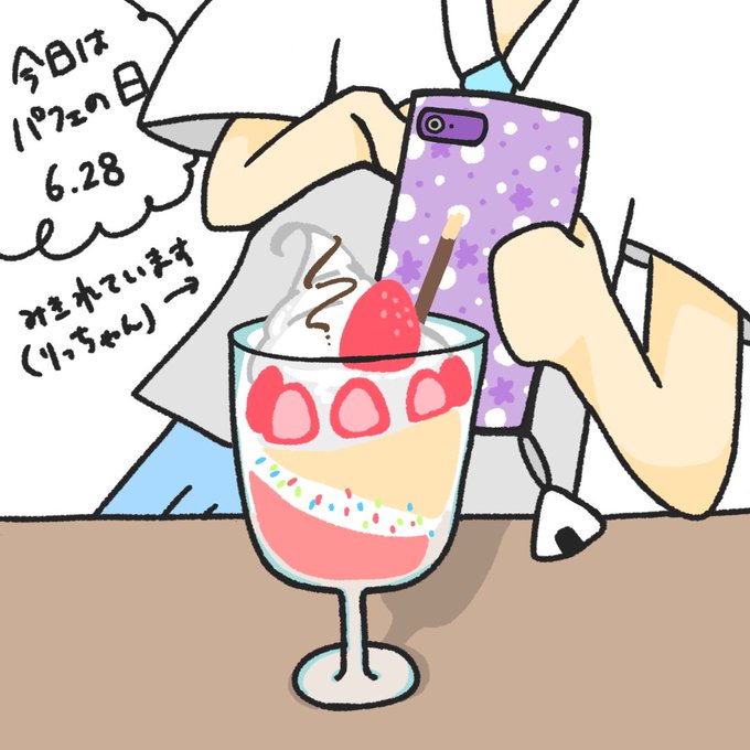 今日は…#パフェの日 \カシャッ/いちごパフェ!\カシャッ/ \カシャッ/いちごパフェ!\カシャッ/ #おにぎりのりっちゃん #イラスト #落書き