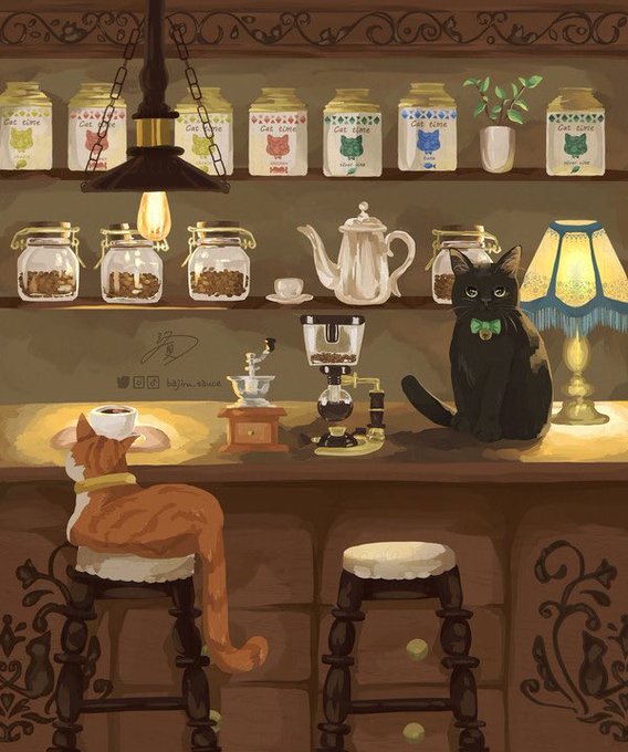 #イラスト #喫茶店巡り #絵描きさんと繋がたい #春の創作クラスタフォロー祭り #猫のいるくらし #猫好きさんと繋がりがりたい #シロクロにゃんこ展