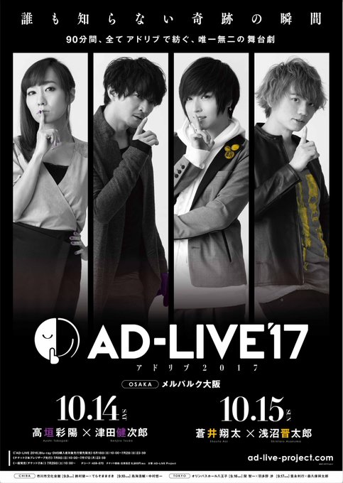 「AD-LIVE 2017」出演者は鈴村健一・てらそままさき・鳥海浩輔・中村悠一・関智一・羽多野渉・豊永利行・森久保祥太郎・高垣彩陽・津田健次郎・蒼井翔太・浅沼晋太郎さんの12名となります!HPもリニューアル!https://t.co/eEnvfXVoAl #ad_live