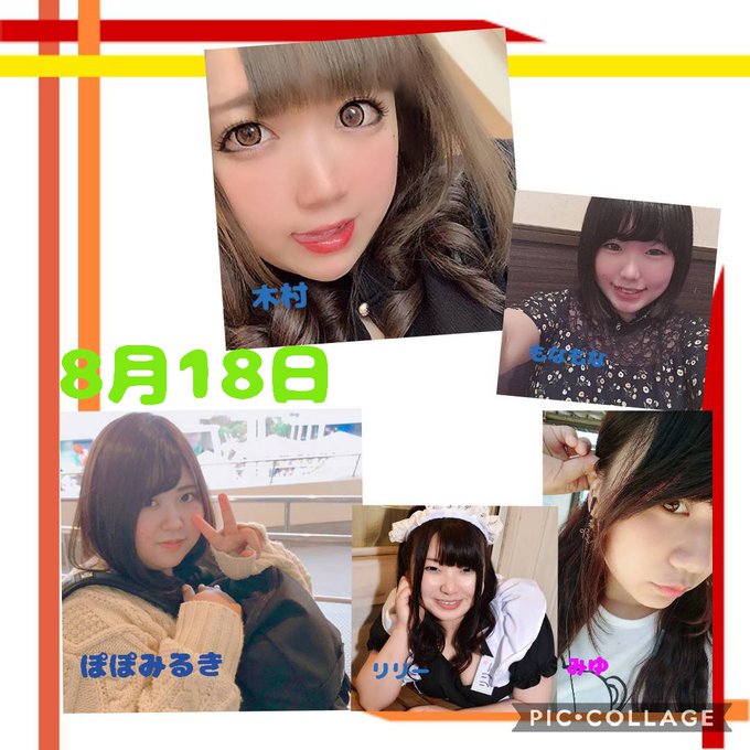 8月18日 もなもな@chaocyuul222,みゆ@miyu_pocha3 ,木村@muramurarinn,ぽぽみるき@fw_fwr ,リリー(予定)@L1L1Y_