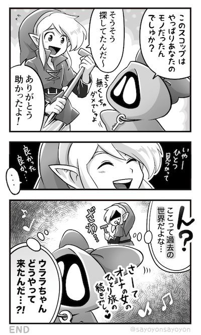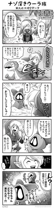 時空の章(大地クリアデータ引き継ぎ)でもウララちゃんに会えて嬉しい! 海で遭難&装備全部盗られて困ってた時に彼女が助けてくれました♪ …でも後から冷静に考えてみたら再会した場所とんでもねー場所だったwウーラ族って一体…w ※6コマ漫画を2ページに分けてます #ゼルダの伝説 #ふしぎの木の実