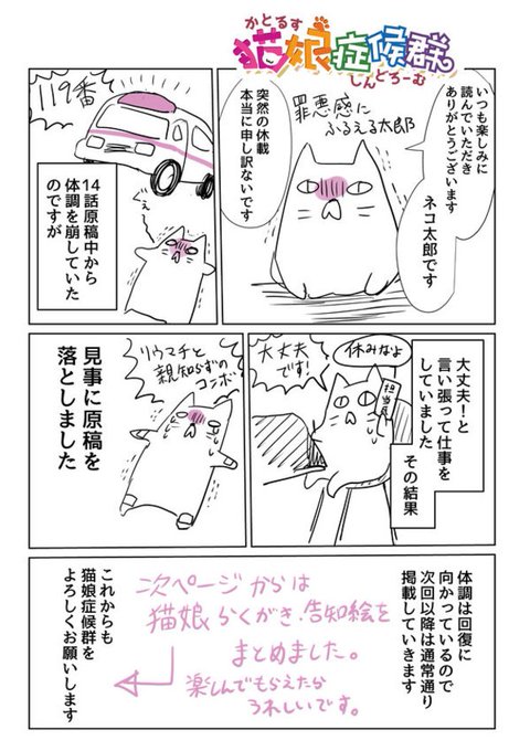 ネコ太郎先生の「猫娘症候群」は今週は休載とのことです。