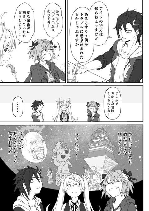 これはシャルルとローランが実装される前に描いた、マンドリカルドくんとアストルフォちゃんとブラダマンテの正月飲み会漫画