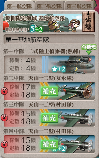 基地は4機切ったらイ級後期落とせなくなるので補充。