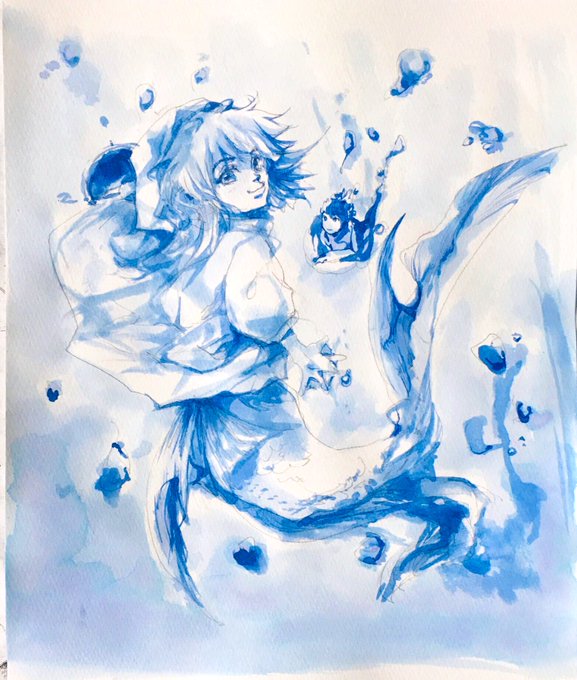 ❷#pet_anime 頭に上げたポニョ風ヒロ司のウルトラマリン下塗り版