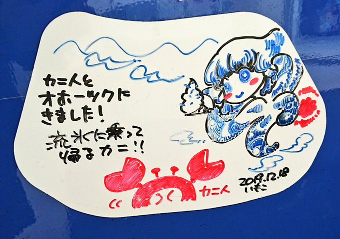 シモベニンゲンを使ってメッセージボードにクリオネ人魚ちゃんのスケッチを残したカニ。流氷に乗るつもりだったカニが、まだオホーツク海に流氷来てなかったカニ。また来るカニ。