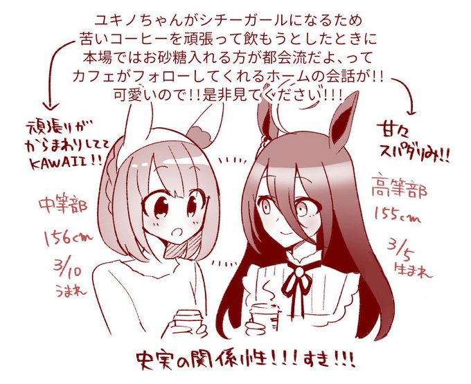 同室と言われても違和感が無いのが タキカフェ 実は同室だと言われて『あ〜』となるのが ヤバいアグネス そもそも同室だという事実があまり知られてないのが カフェユキ #ウマ娘 #アグネスタキオン #アグネスデジタル #マンハッタンカフェ #ユキノビジン