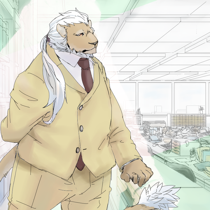 スーツ第2弾、ひとりめ 3つボタンのクラシックスタイル ライオン(ポニテ)