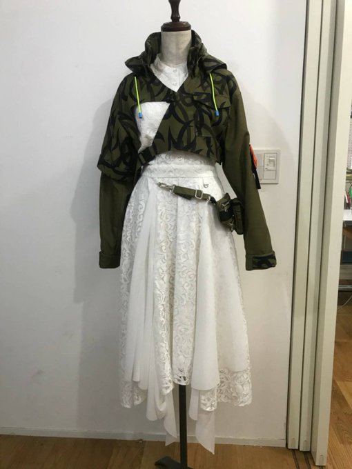 乃木坂46×荒野行動のコラボCMにて衣装製作を担当させて頂きました💐生地はオリジナルでトライバルカモをベースにNと46で迷彩柄を構成してもらいました🙏スカートは風車のように4方向に羽をつけて回った時に風を巻き込むように作りました🪡