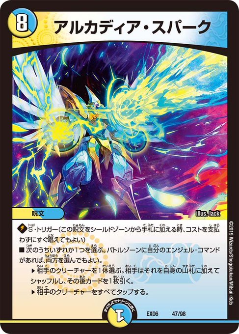 デーモンコマンドかつSトリガー持ち呪文を墓地から唱えてシールドに送れば、クリーチャー破壊もできるしイエス・ザナドゥの能力で破壊できる点も見逃せない。