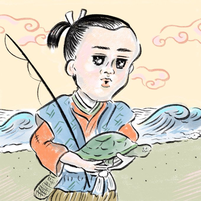 Urashima Taro🎣🐢浦島太郎 少しシュール、筆ペンタッチです🌸 #drawing #イラスト #イラストレーター #illustration #illustrator #art #かわいい #シュールイラスト #シュール #cartoon #artgallery #artlover #ドローイング #絵本イラスト #童話 #昔話 #絵本 #日本むかし話 #浦島太郎