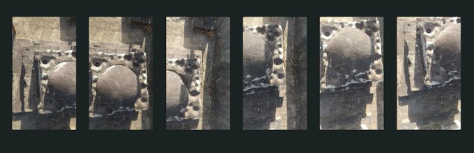 フォトグラメトリ:真俯瞰の写真だけでどこまで高低差が再現できるか(立体化できるか)の実験。6枚の真俯瞰写真(1枚目)からフォトグラメトリで3D立体化(2枚目)、答え合わせ(3枚目)