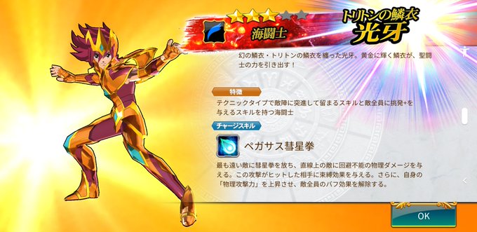 ピックアップキャラのトリトン鱗衣の光牙を入手しました。