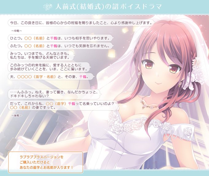 あなたの苗字になった千鶴が誓いの言葉を言ってくれるラブラブプラス、