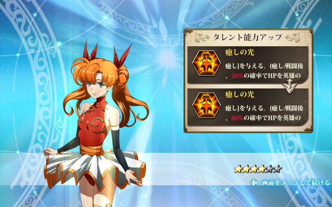 ‐ティアリスが星4に。扉2倍の恩恵。今は60%の癒しでも心強い。