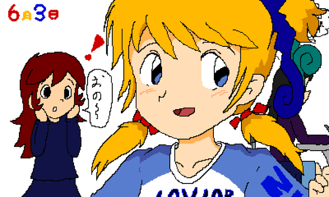 ドットアーティストから書き出されたままのファイルはこちら。400x240で作ったのですが、強制的に512x256になるみたいですね。さっきのはメディバンでトリミングしてます。