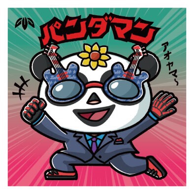 キャラクターの名前は、パンダマンです♪トレードマークの赤色のバンダナを被っております👍