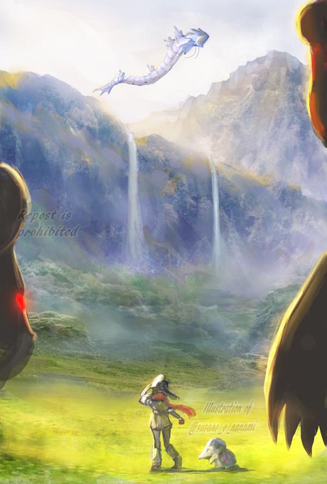 "おくりごと"という小説のファンアートです。このシーンが一番好きなんです。これからヒスイ地方でモクローとミジュマルの存在証拠がはもういないのは悲しいですが、とても優しい暖かい話です。