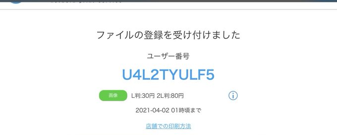 ローソン・ファミマで印刷できます。(写真用紙:L版・2L版)