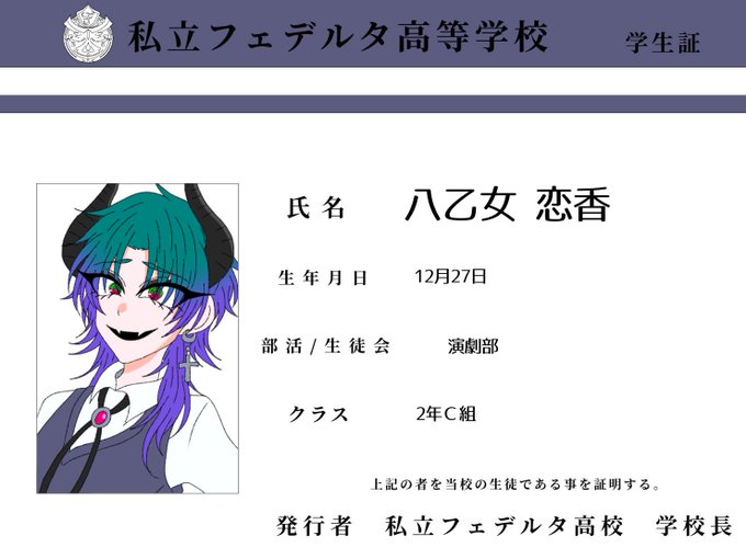 #フェデ高 #フェデ高_解体新書 夜瀬。(@ynym__p )様宅 3年A組 九重 ケイ