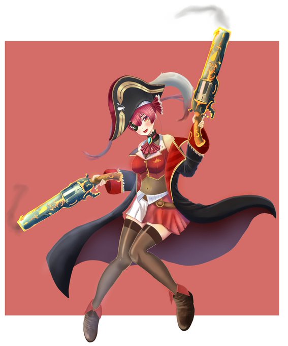 少し前にソシャゲ風の宝鐘マリン船長描いてみた #マリンのお宝 #ホロコミ #ホロライブ #ホロコミイラスト