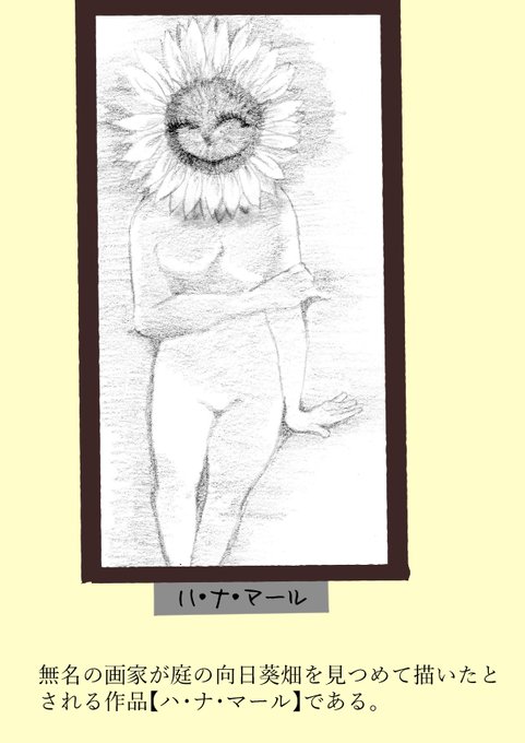 @hanahanamarumar ありがとうございます!無名の画家が描いたハ・ナ・マールとトキマサさんのキャラから産まれた、はなまるさんの擬人化とデフォルメです!
