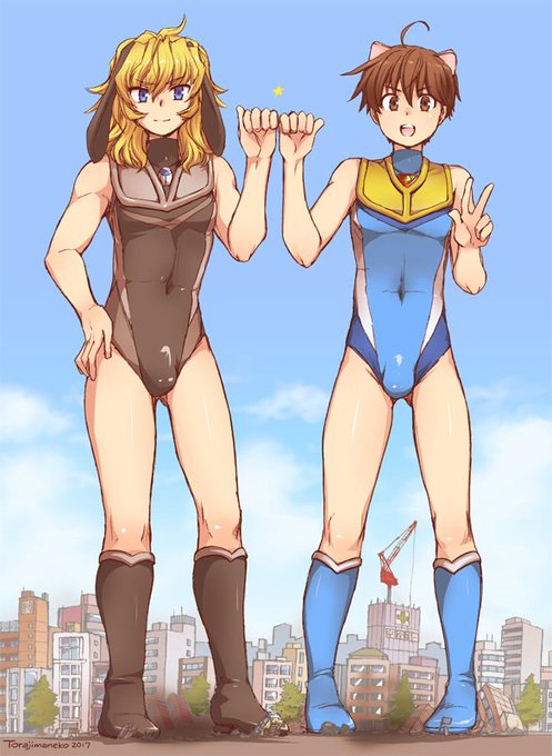 【ラクガキ】15歳ぐらいのマンクスとふぐりん。凶悪な破壊力を秘めている安産型の腰つき!コスチュームは@Ryo_Macroさんのデザインです。