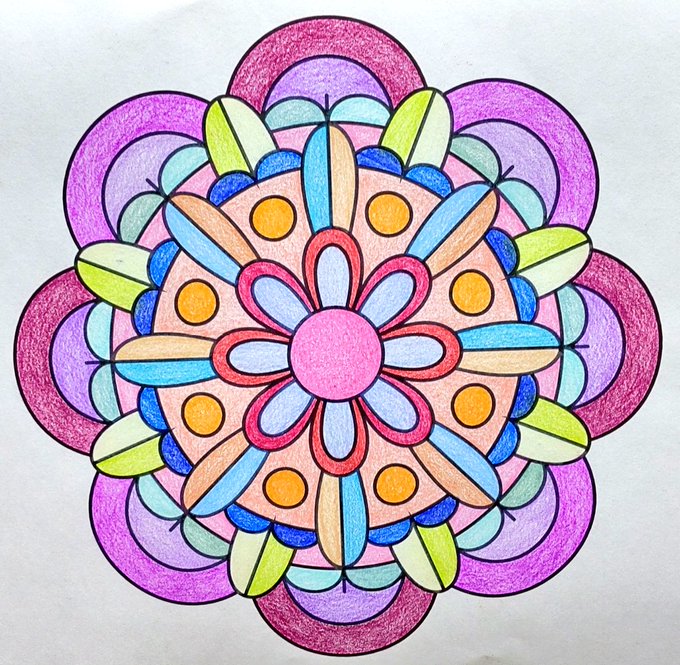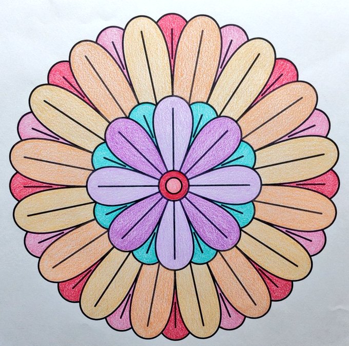 お昼のカラフルマンダラ 🎀 #マンダラ塗り絵 #やさしい大人の塗り絵