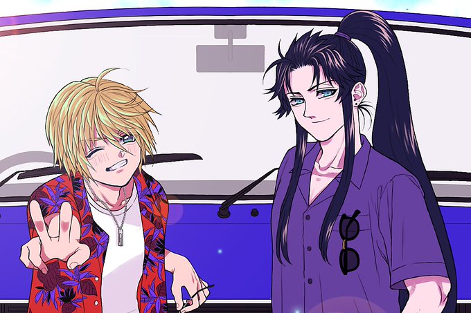 現代パロディのレインとラスウェル(設定はみんなで海に来てる)そして実はこの絵には原稿用紙10枚分くらいの設定と想いが込められてます(重たい)