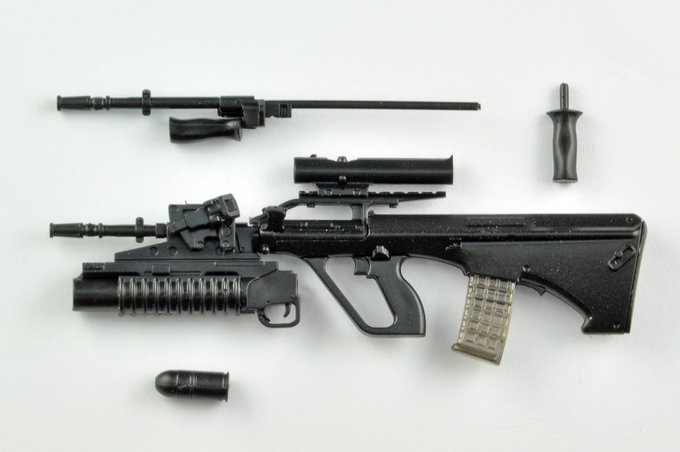 ブルパック式アサルトライフルの傑作“AUG”より、ブラックストック&フラットトップレシーバーモデルを製品化。専用M203グレネードランチャー付属。