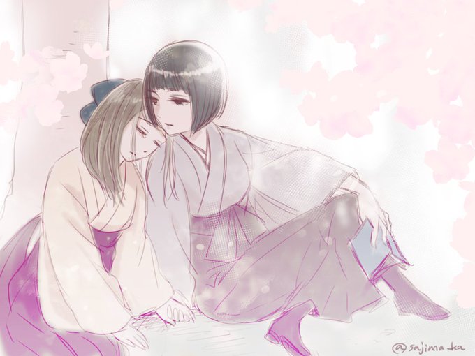 桜見てるとあれだな…時代物の漫画とかアニメとか小説見たくなるよなって言う落描き。