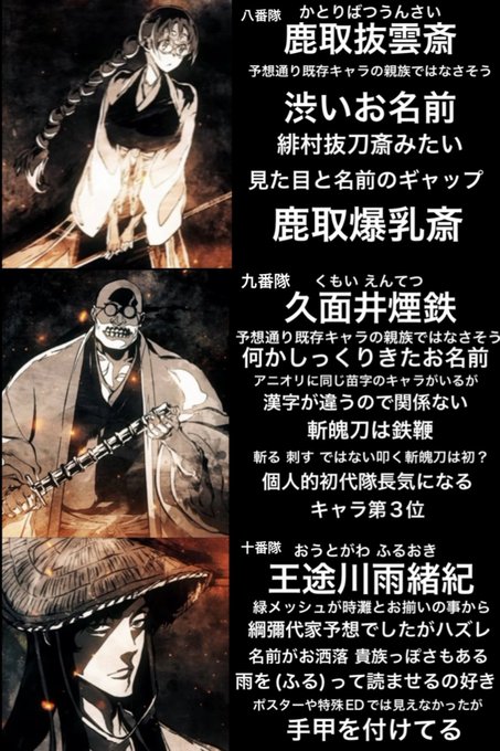 BLEACH初代護廷十三隊、齋藤不老不死ちゃんのビジュアルと名前のセンスが良すぎて久々にブッ刺さってる