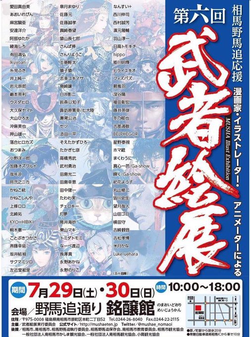 【お知らせ】『第七回武者絵展』に今年も新作で参加します。福島県南相馬市「野馬追通り 銘醸館」7/28(土)〜30(月)開催。チラシにもチラリと掲載されていますが今回はおんなのこを描いてます。よろしくお願いします