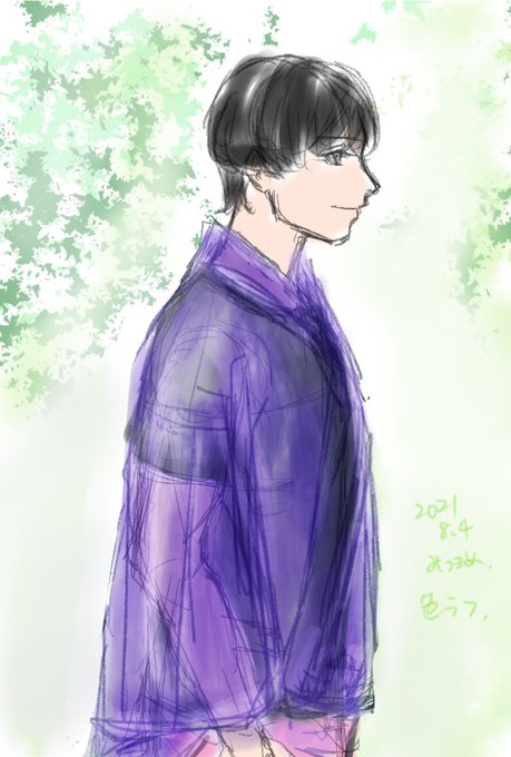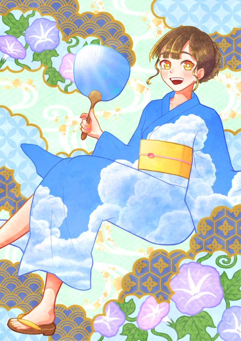 描いてる途中で日傘から梅雨イメージで雨傘に変わり、着物も浴衣だったのを単衣に変えました。着物の知識がなかったら危なかった。