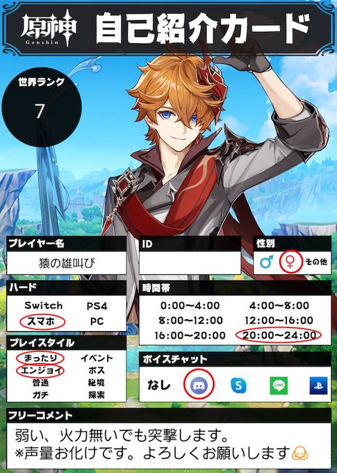 #原神自己紹介カード #原神フレンド募集中 #原神マルチ募集