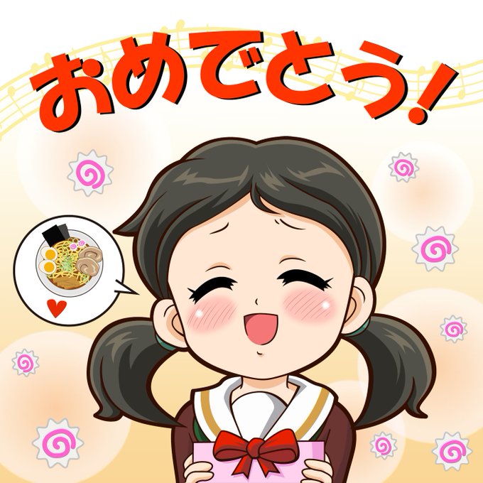 ご当地ラーメンセットをもらって喜ぶ晴香部長(・´ω`・)