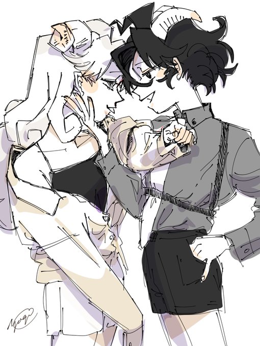 創作も描いていきたいという気持ちから山羊創作タグの爆誕 これは苗村と遠山 #山羊創作