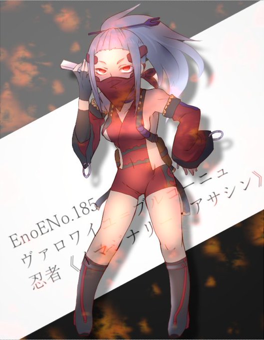 バグ・スタバーン 12/10 20歳 162cm 50kg O型型 ダスト どんくさい箱入り忍者娘。自分に自信がなくいつもおどおどしている。手裏剣が武器。彼女のすむ街は忍者が多く幼い頃流派違いの忍者や謎の怪物の攻撃によって多くの住民が命を落とした。その時両親も亡くし現在は叔母の家でニートをしている