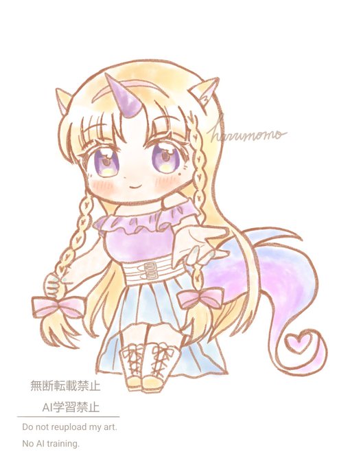 頂いたキャラデザを盛りもり盛り込んで生まれたユニコーンちゃん(左)