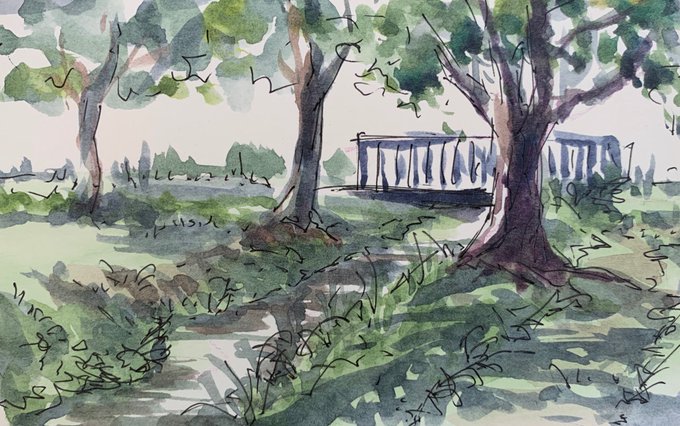 2020.5.9 自転車散歩スケッチ、藤田邸跡公園にて…