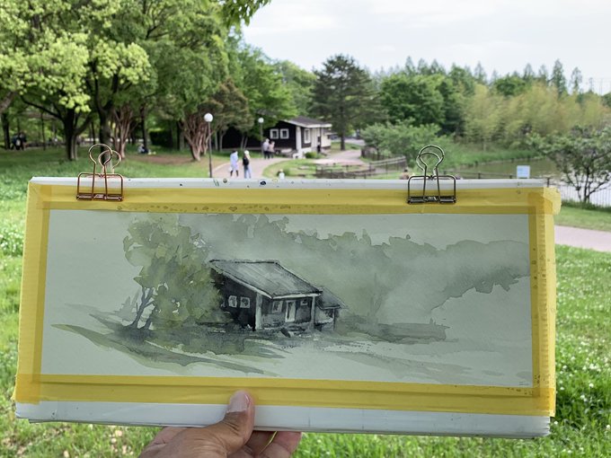 ワトソン 171×343mm F4ハーフ 水彩 36分 ♪