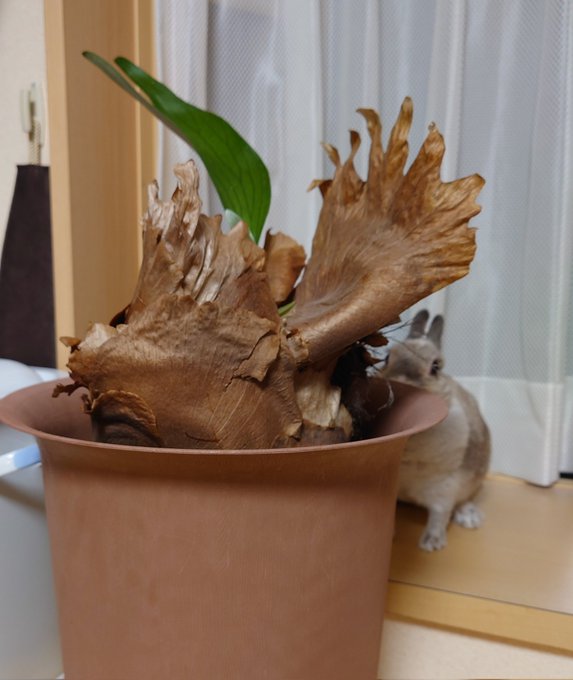我が家のコウモリランが新芽を