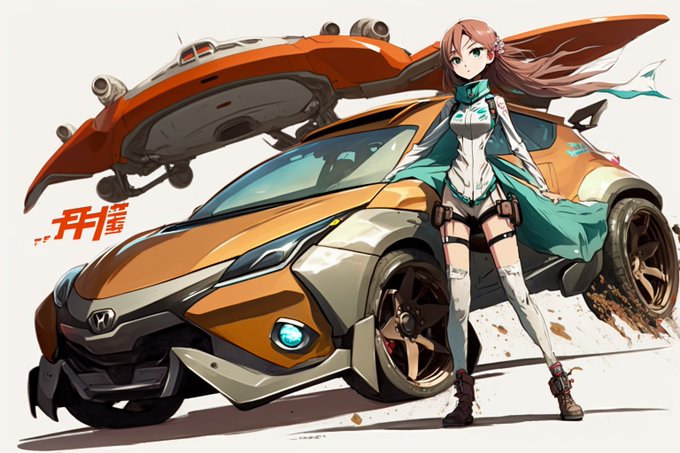 midjourneyで「車」「日本アニメ」と入力して出てくると何故か出てくるアニメ風キャラは車ごとに大体決まってるようだ
